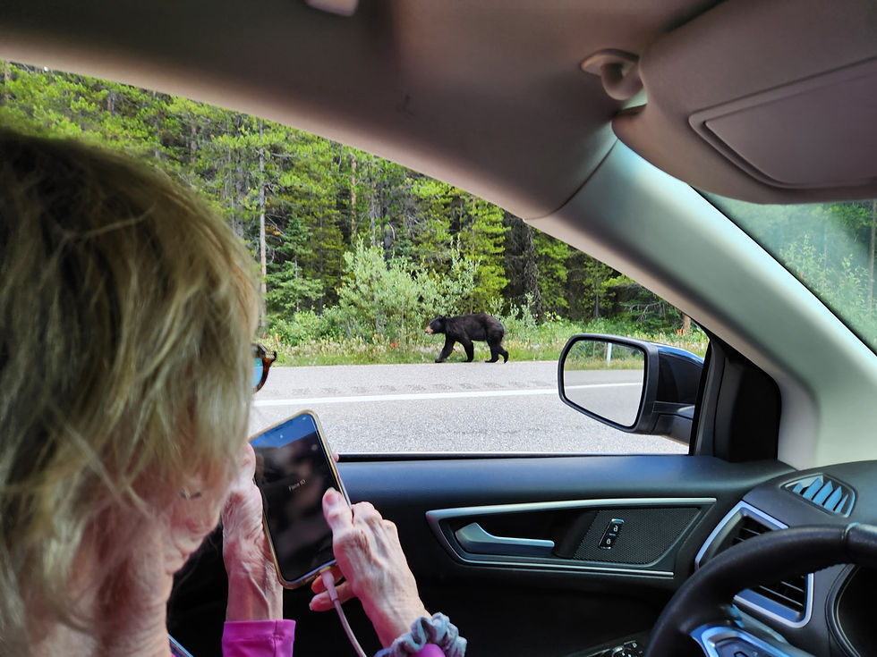 The cub slowly sauntered right in front of our car as we were driving out of downtown Banff. We didn't think to get a pix until he had crossed the road.